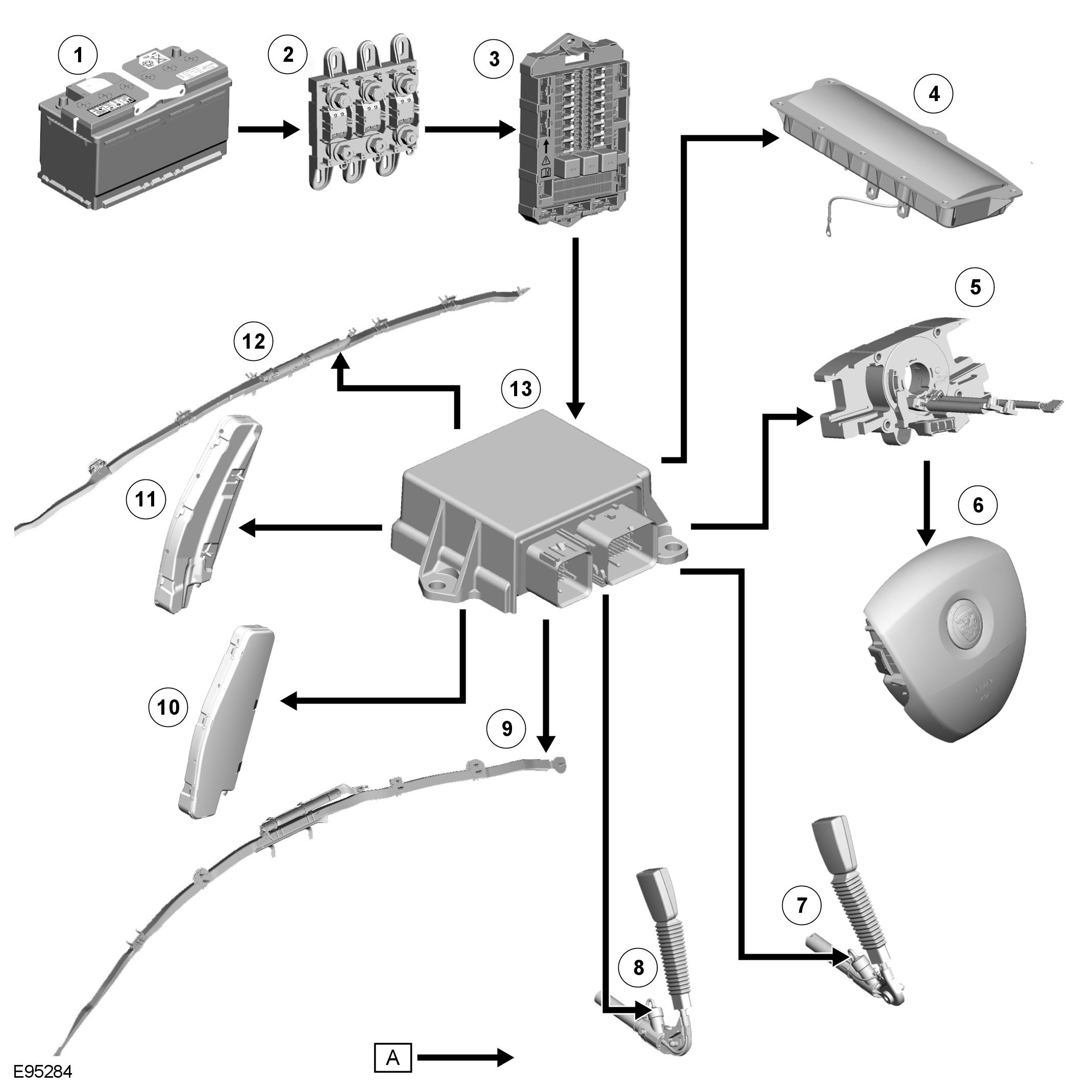 - A safety belt tension sensor, integrated into the anchor point of the front passenger safety belt