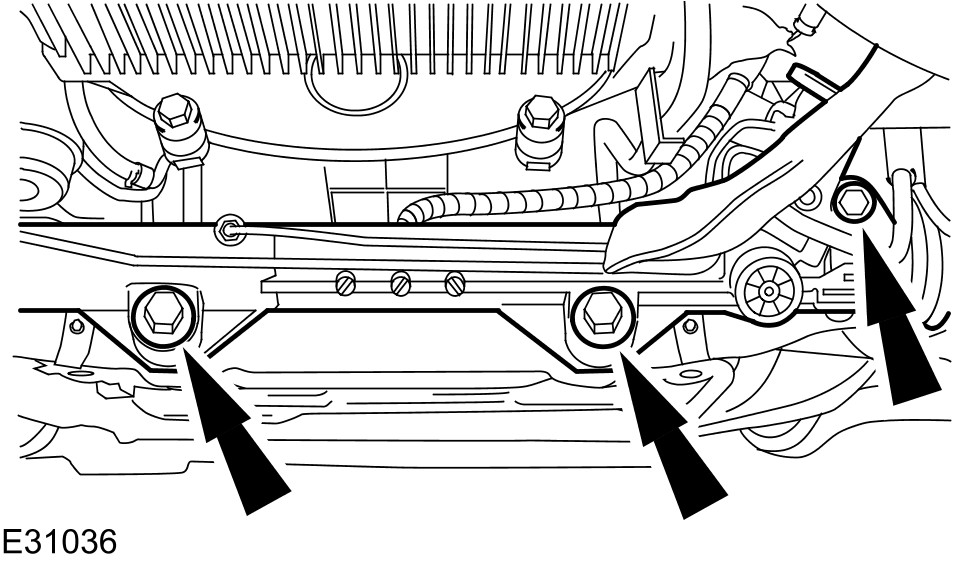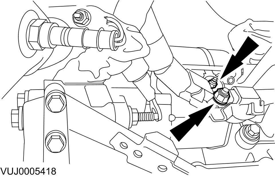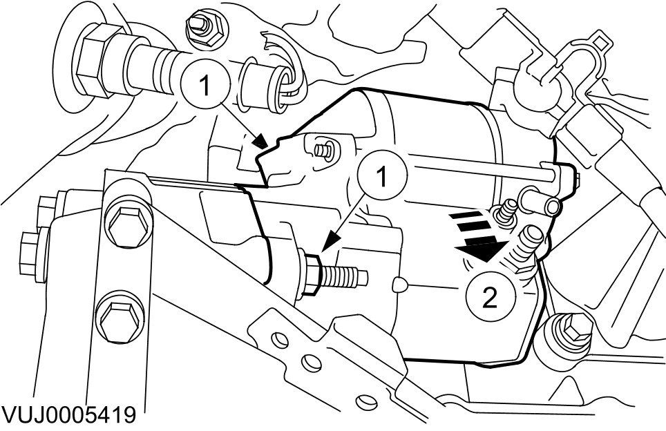 - Remove the starter motor retaining bolts.