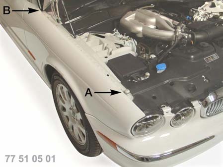 Remove hood (bonnet) adjuster (located at point A)