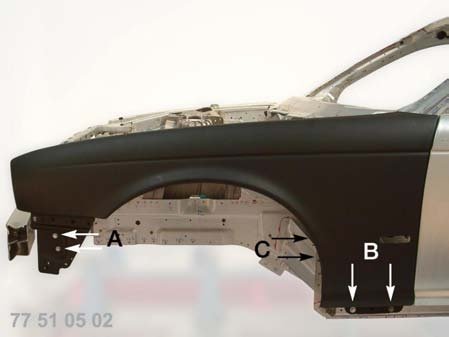 - Fender to front pillar (2 x 10 mm) point C.