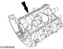 NOTE: Lubricate the upper crankshaft main bearings and thrust washers.