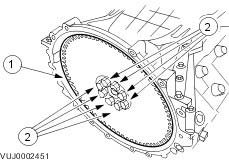 13. CAUTION: Alternate nut tightening to correctly seat the crankshaft rear seal.