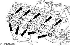 33. CAUTION: Alternate bolt tightening to correctly seat the camshaft bearing caps.
