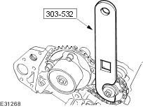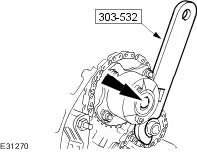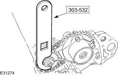 65. Install the timing chain tensioning tool 303-532 to the exhaust camshaft sprocket.