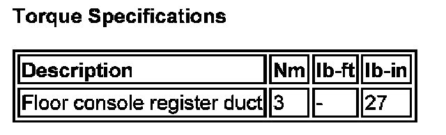 Torque Specifications: