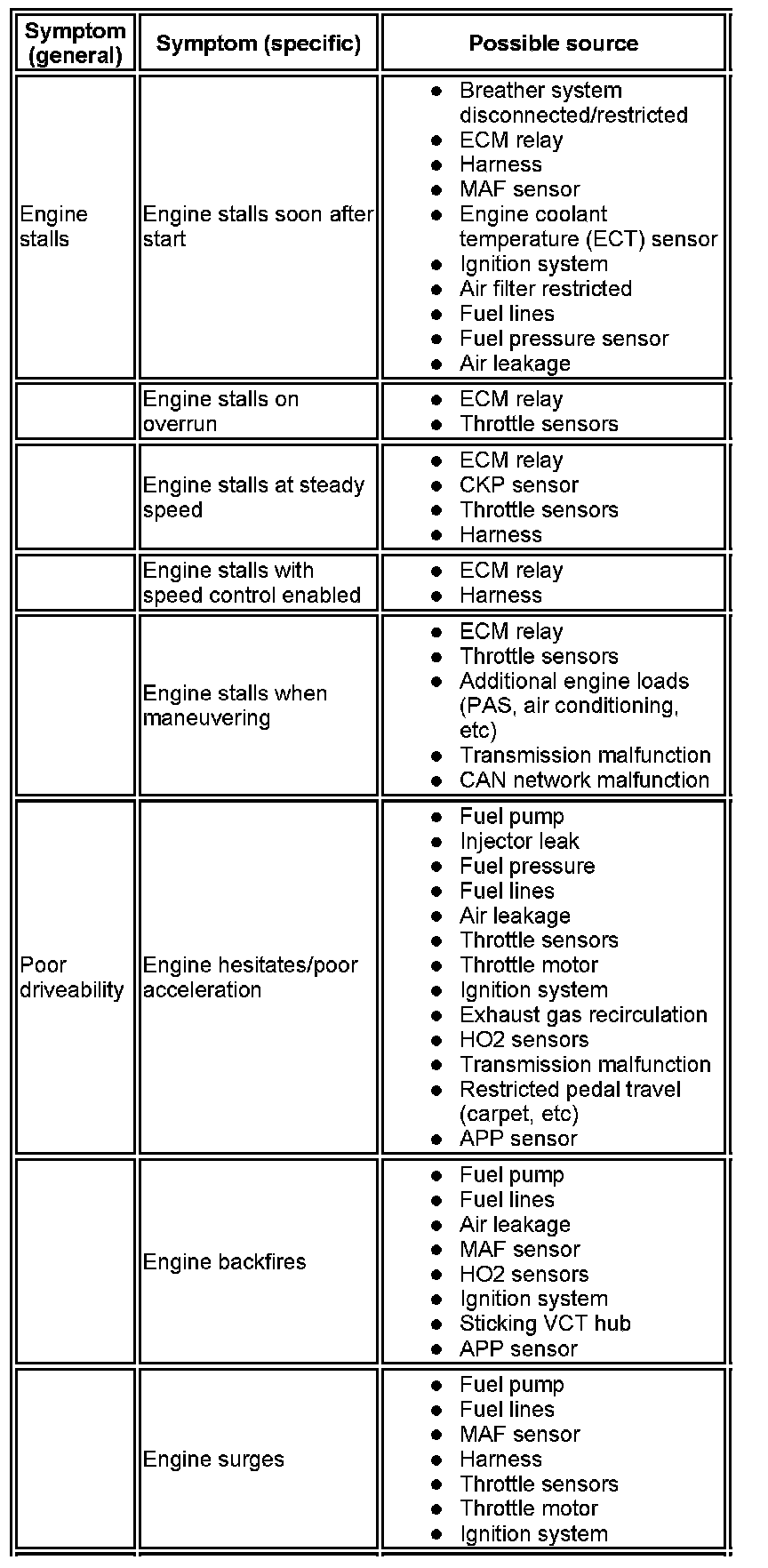 - Fuel contamination/grade/quality - Sensor(s)