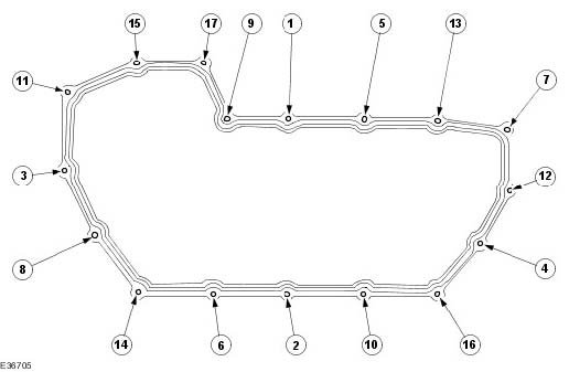 Tighten the retaining bolts in the indicated sequence in two stages.