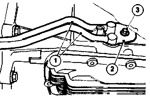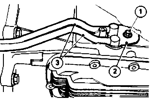 3. Disconnect the transmission fluid cooler tubes. Drain fluid into a suitable container.