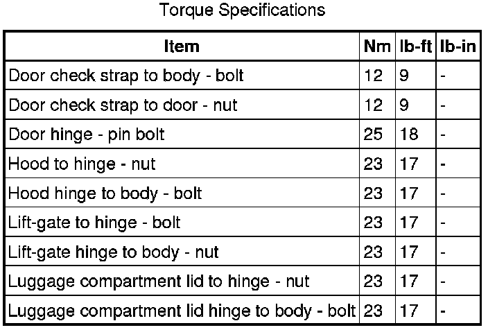 Doors, Hood and Trunk: Specifications