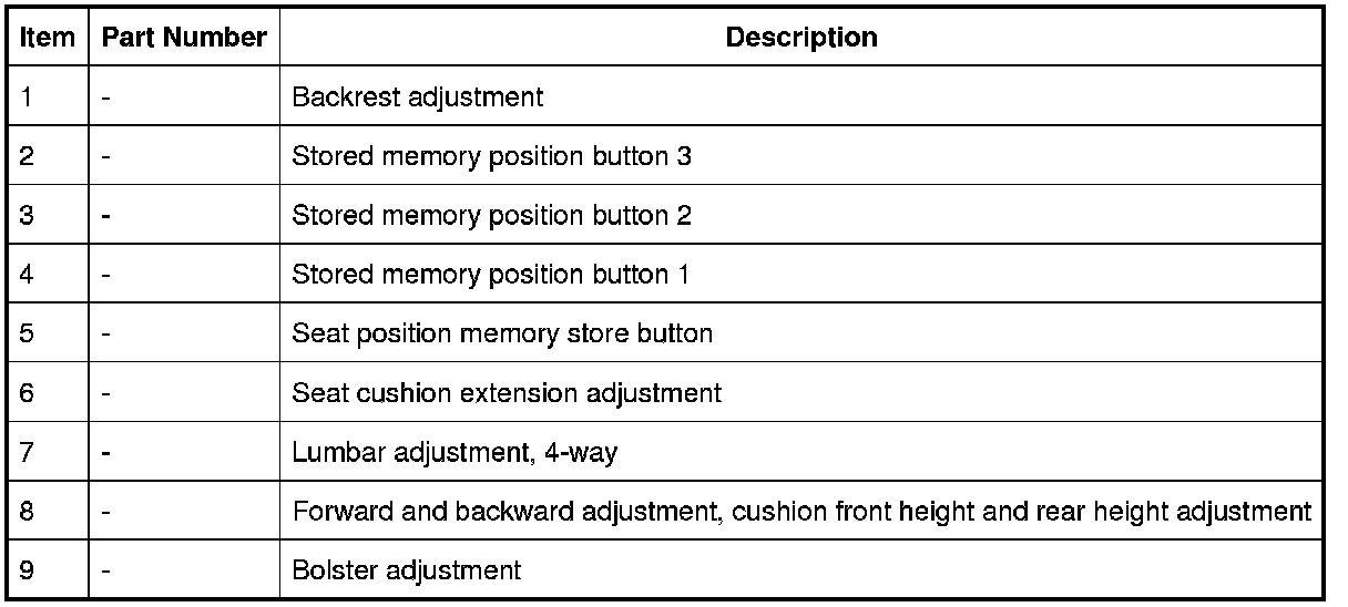 The procedure to memorize a passenger seat position is the same as that for the driver's seat with two exceptions. There will be no chime or message to confirm the settings.
