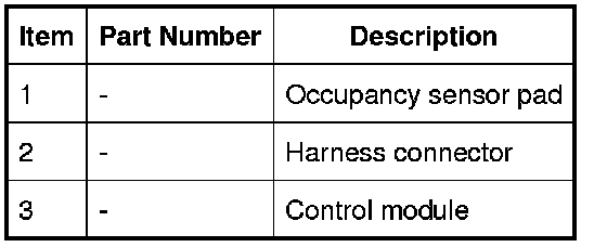 The occupant detection system determines if the front passenger seat is occupied or unoccupied. The system consists of a pressure sensor installed between the foam padding and the cover of the front passenger seat cushion. From the occupancy status, and the status of the front passenger safety belt, the instrument cluster determines the seat belt minder status. For additional information, refer to Air Bag Supplemental Restraint System (SRS) Description and Operation