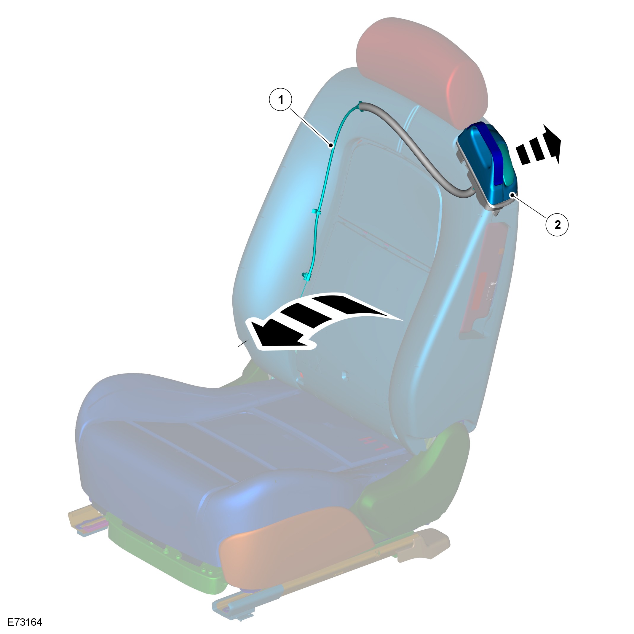 In the event of a control module failure a fly lead behind the seat valance can be used to connect a power source directly to the seat slide motor. This enables the seat to be moved to gain access to the front and rear seat fixings. The seat can then be removed from the vehicle in order to access the control module.