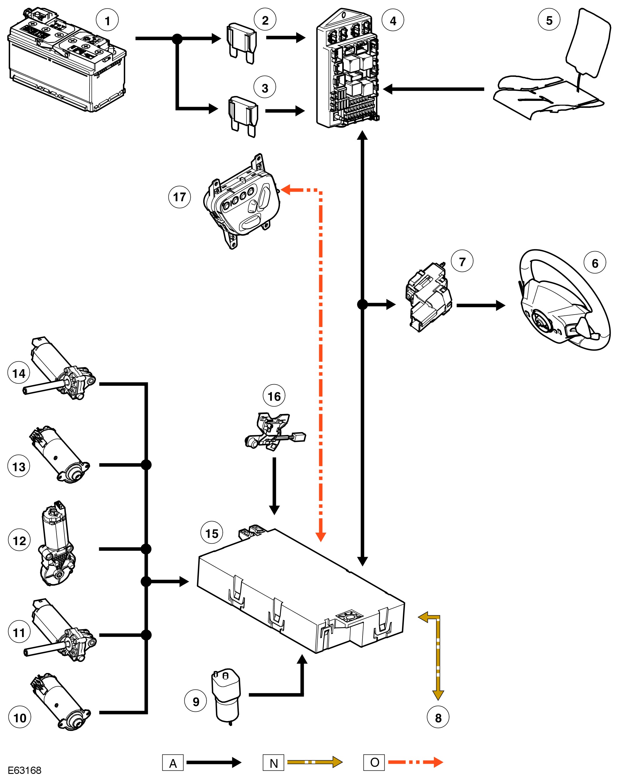 A = Hardwired; N = CAN bus; O = LIN bus