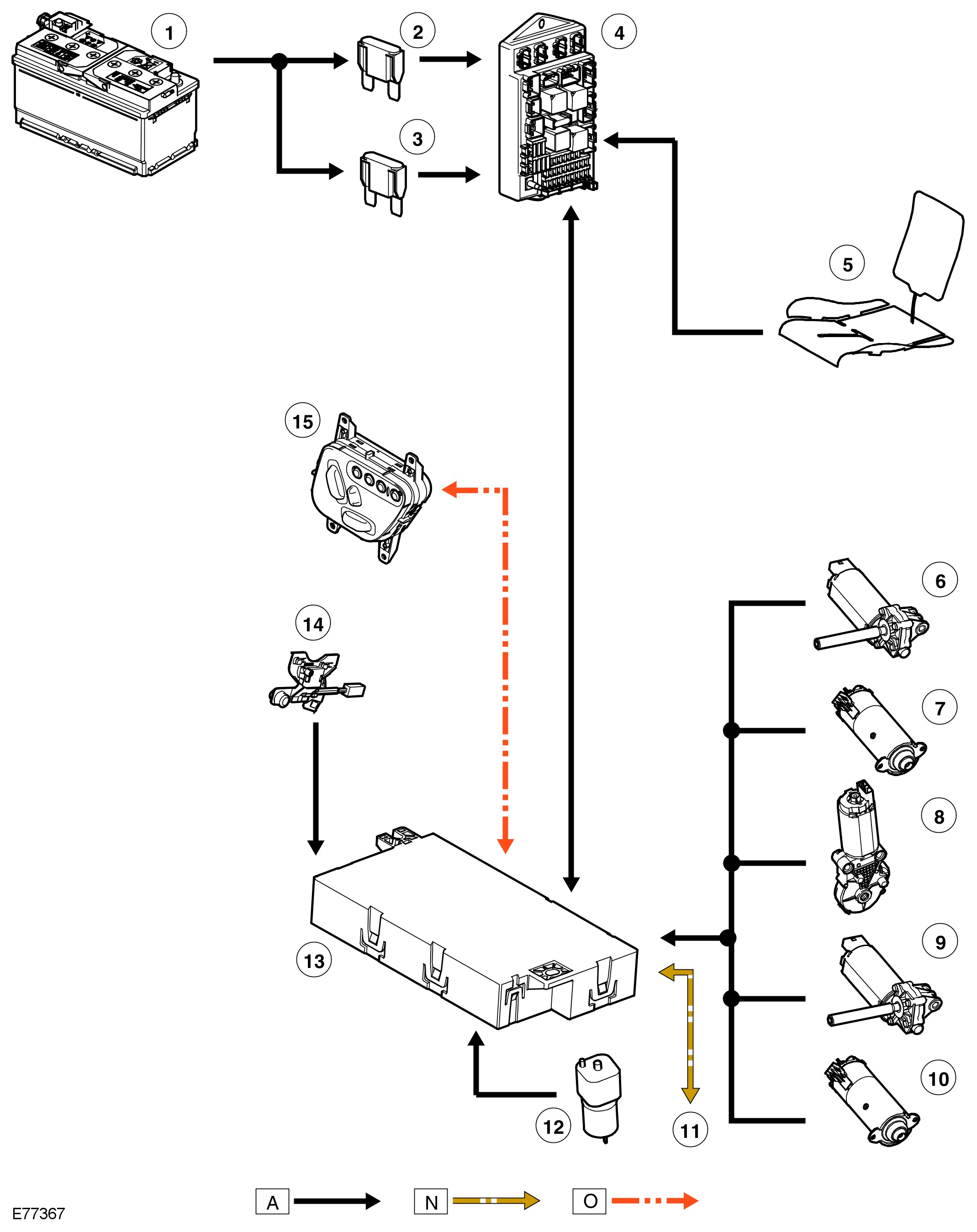 The switches for electrically adjusting the seats are wired directly to the appropriate control module, which controls the movement of the seat via Local Interconnect Network (LIN) serial communication protocol.