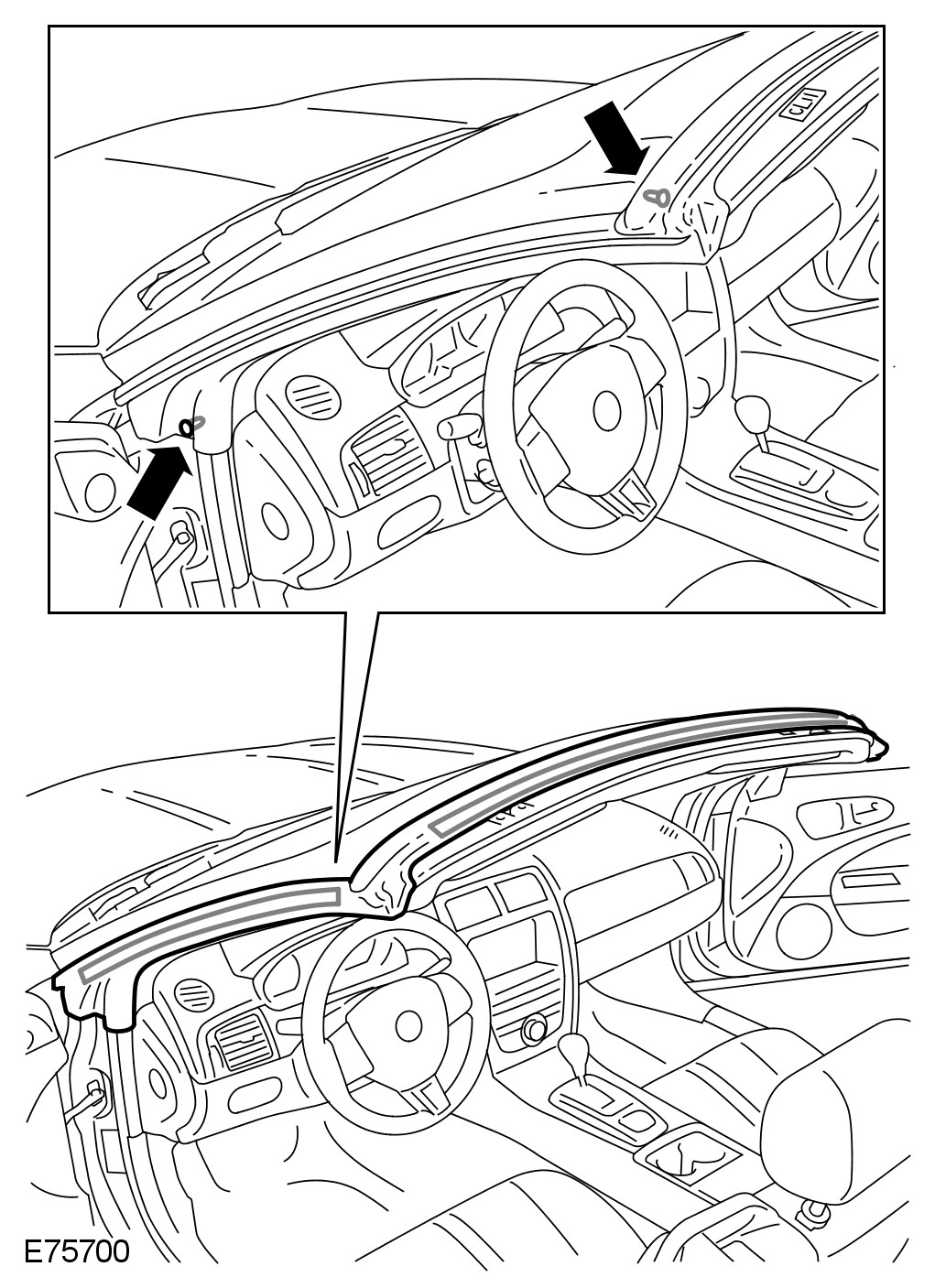 2 Release the header rail weatherstrip.