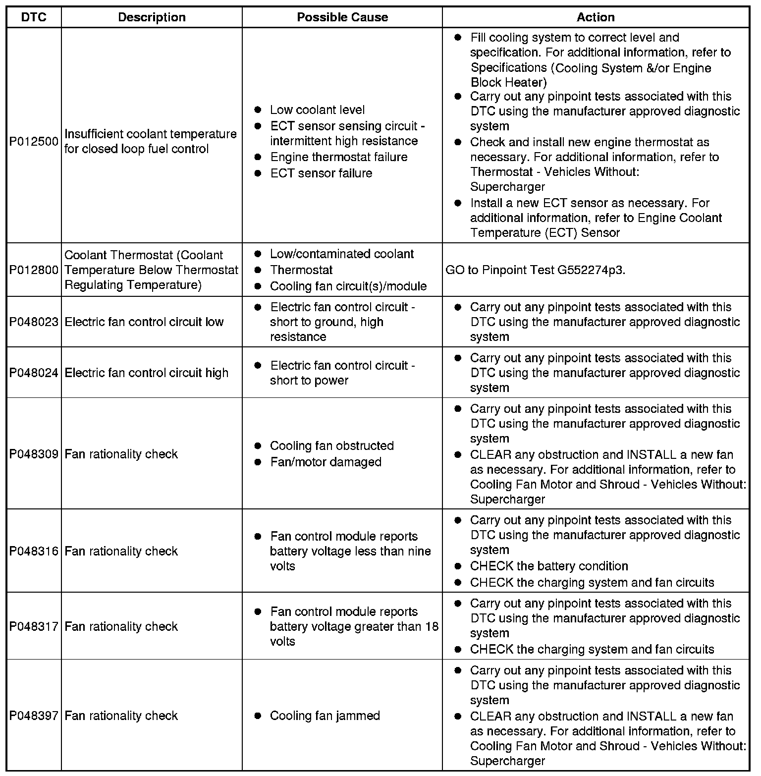 If DTCs are recorded and, after performing the pinpoint tests, a fault is not present, an intermittent concern may be the cause. Always check for loose connections and corroded terminals.