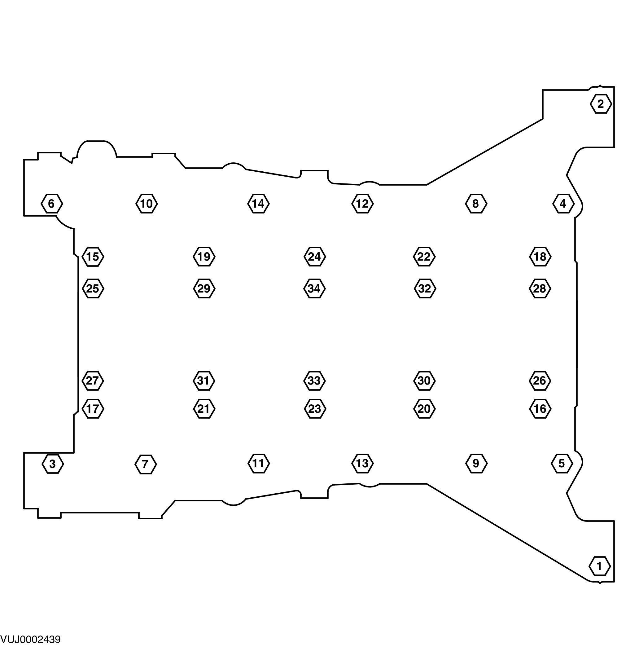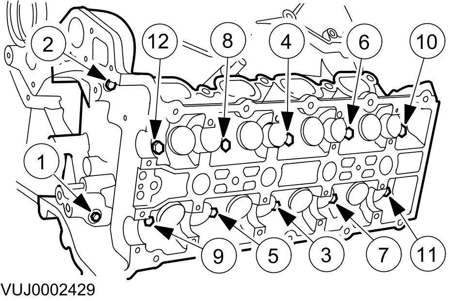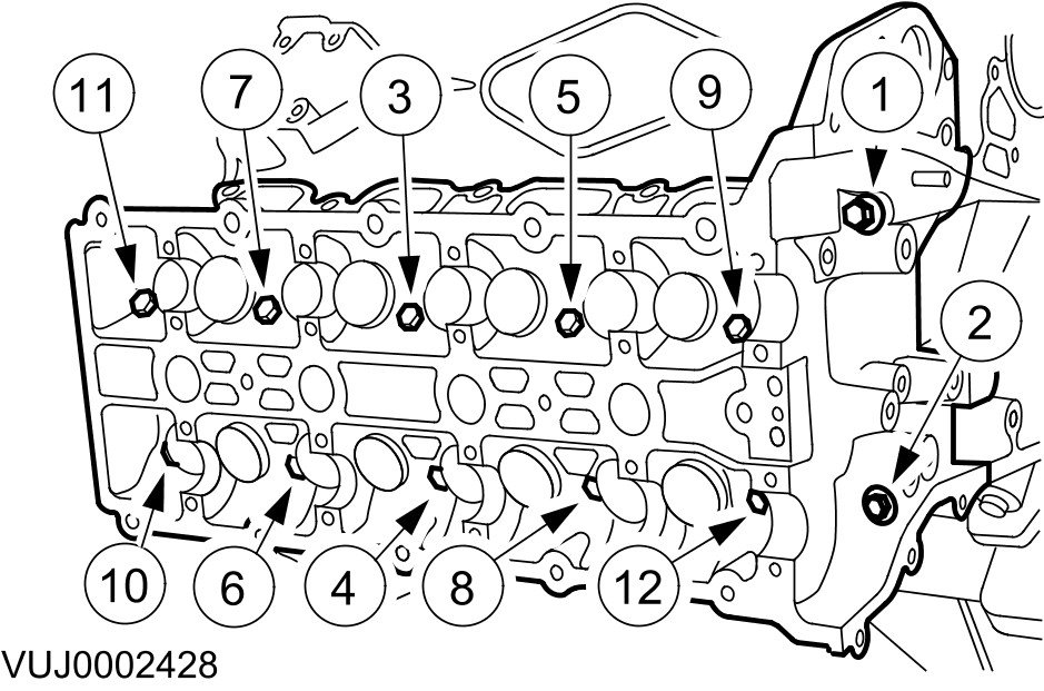 - Remove the bolts in the indicated sequence.