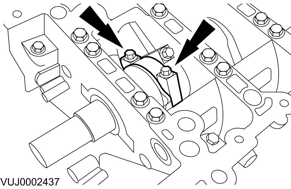 - Remove the camshaft bearing cap retaining bolts evenly and in stages.