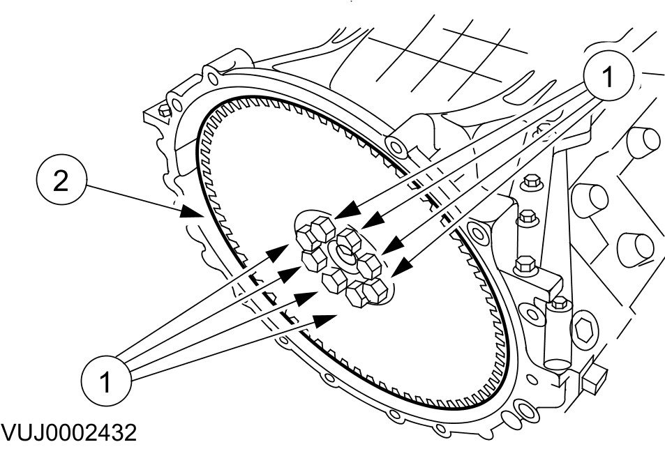 1) Remove the flexplate retaining bolts.