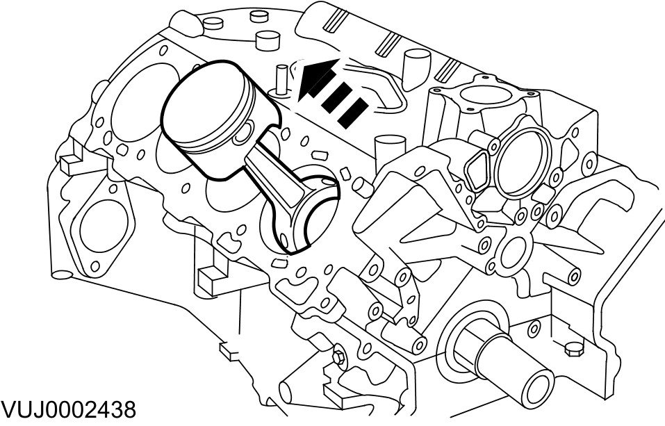 - Push the piston, connecting rod and upper bearing through the top of the cylinder.