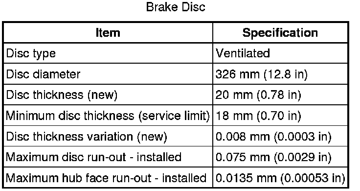 Rear Disc Brake Specifications