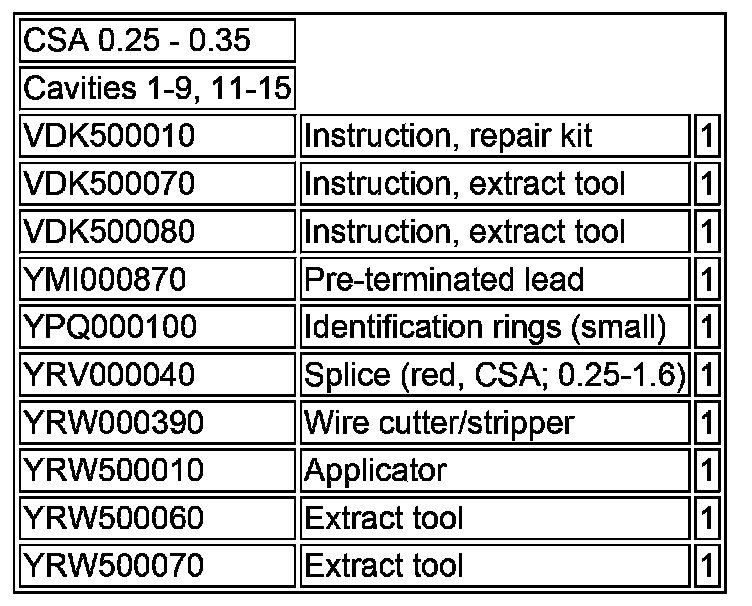 NOTE: Before commencing a repair, refer to the appropriate 'Service Repair Kit' table (see example in Table 1 below) for details of the correct tools and replacement components. The 'Service Repair Kit' table (where appropriate) can be found beneath the 'Connector Details' in the Electrical Reference Library (ERL).