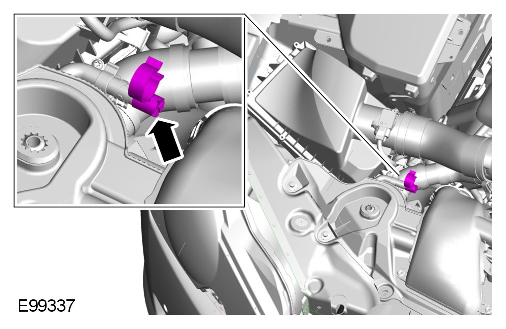 21 Install the radiator splash shield. For additional information, refer to Radiator Splash Shield Radiator Splash Shield