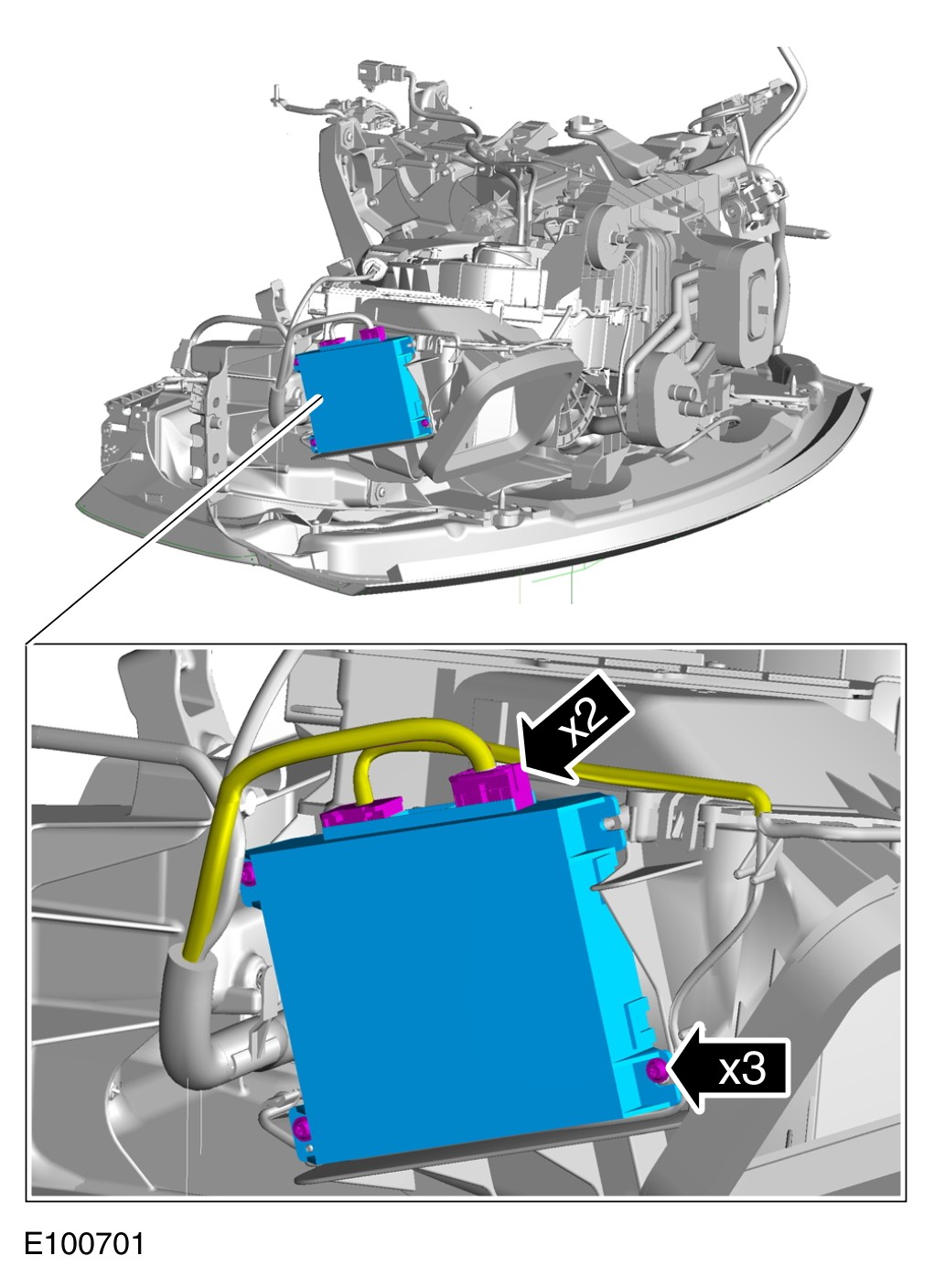 CAUTION: Take extra care not to damage the clips or screw threads. Failure to follow this instruction may result in damage to the climate control assembly.