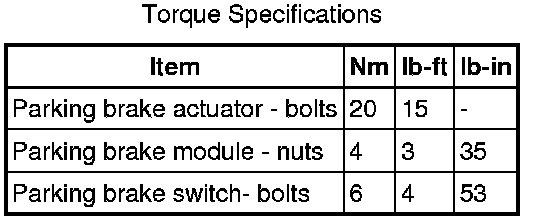Parking Brake System: Specifications