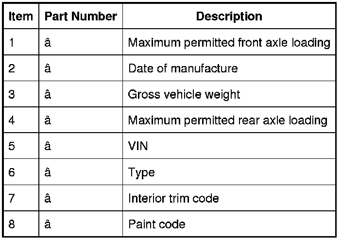 Vehicle Identification Number (Typical)