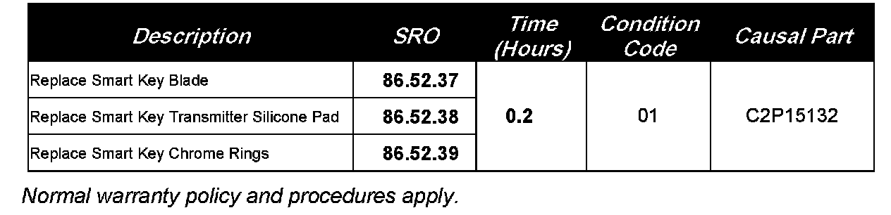 Dealers can now affect repairs to the Smart Key, should a customer express concern of certain conditions: