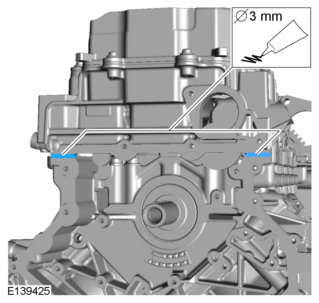 1 Apply RTV sealant WSE-M4G323-A6 (Loctite 5901G) to the areas shown, and tighten the bolts within 7 minutes.