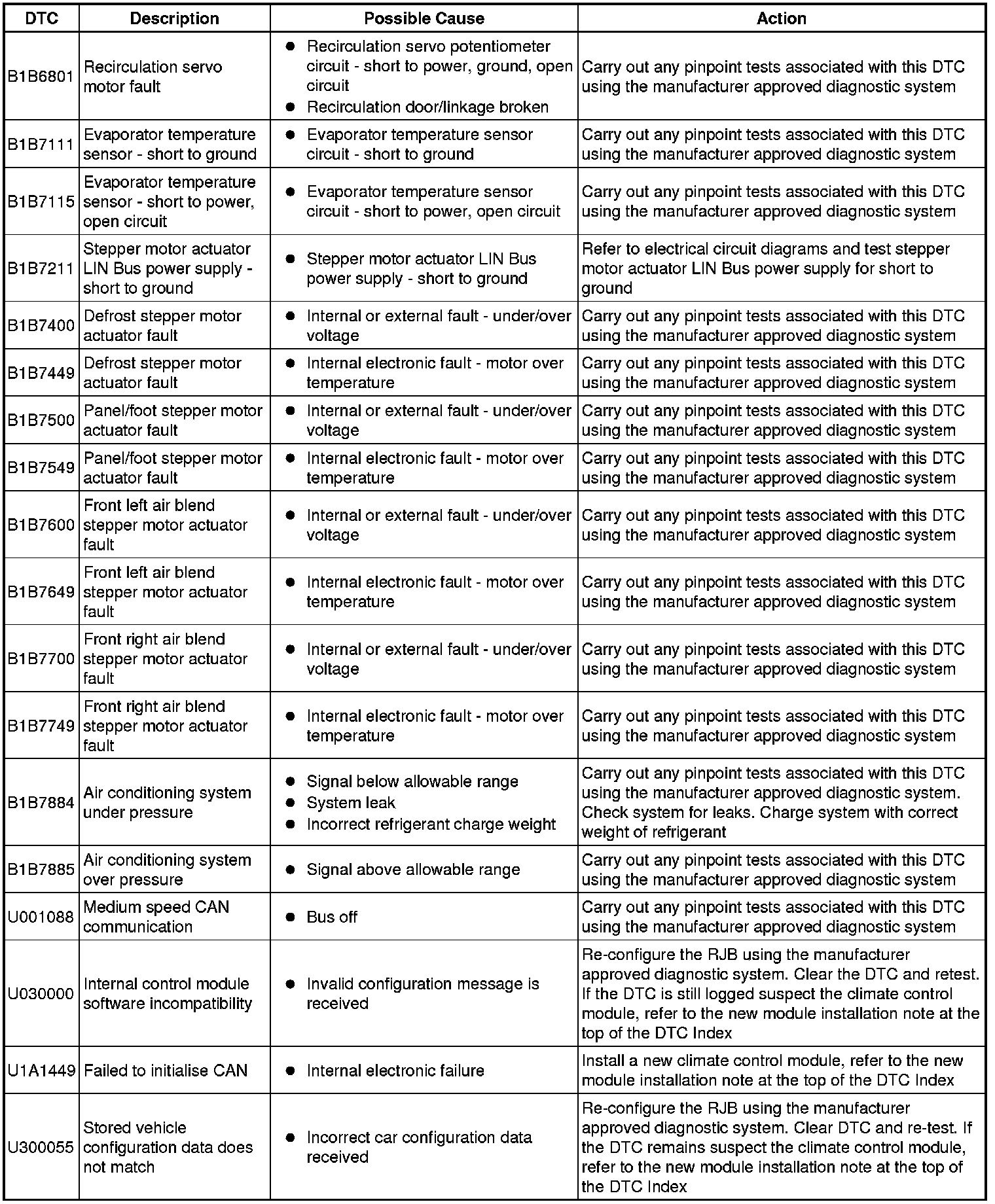 Generic scan tools may not read the codes listed, or may read only five digit codes. Match the five digits from the scan tool to the first five digits of the seven digit code listed to identify the fault (the last two digits give extra information read by the manufacturer-approved diagnostic system).