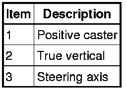 Caster is the deviation from vertical of an imaginary line drawn through the ball joints when viewed from the side. The caster specifications will give the vehicle the best directional stability characteristics when loaded and driven. The caster setting is not related to tire wear.