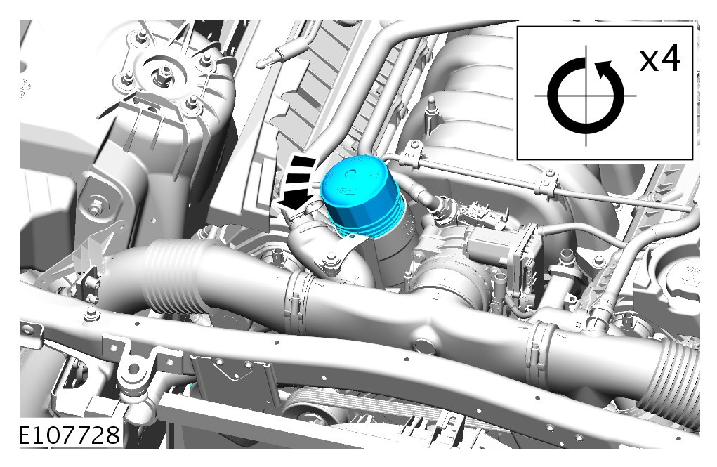 Allow the engine oil to drain from the oil filter element housing for two minutes.