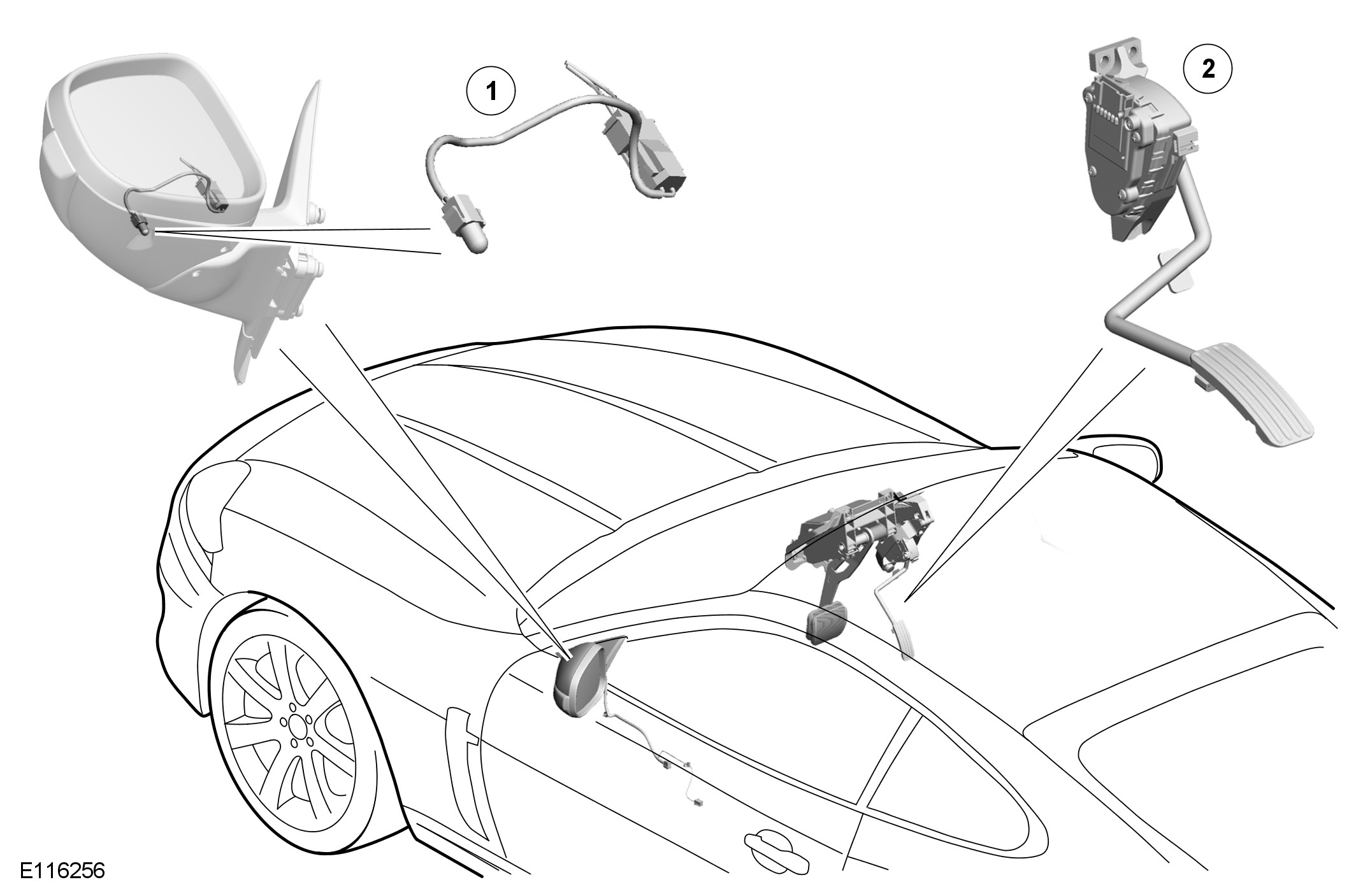 The AAT sensor is installed in the LH (left-hand) exterior mirror, with the bulb of the sensor positioned over a hole in the bottom of the mirror casing.