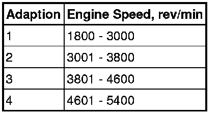 The characteristics of the signal supplied by the CKP (crankshaft position) sensor are learned by the ECM (engine control module). This enables the ECM (engine control module) to set an adaption and support the engine misfire detection function. Due to the small variation between different drive plates and different CKP (crankshaft position) sensors, the adaption must be reset if either component is renewed, or removed and refitted. It is also necessary to reset the drive plate adaption if the ECM (engine control module) is renewed or replaced. The ECM (engine control module) supports four drive plate adaptions for the CKP (crankshaft position) sensor. Each adaption relates to a specific engine speed range. The engine speed ranges are detailed in the table below: