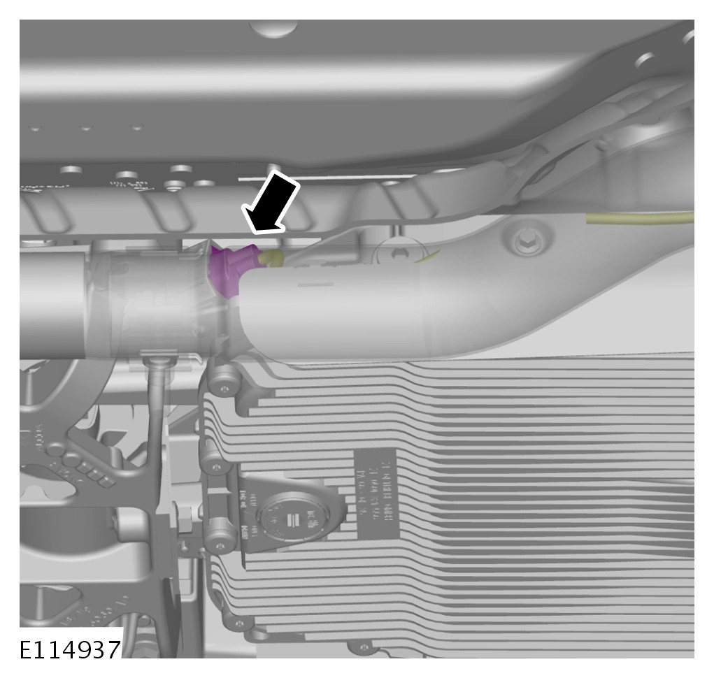 CAUTION: Make sure the catalyst monitor sensor wiring harness is not twisted more than 180 degrees and is not in contact with either the exhaust or driveshaft.