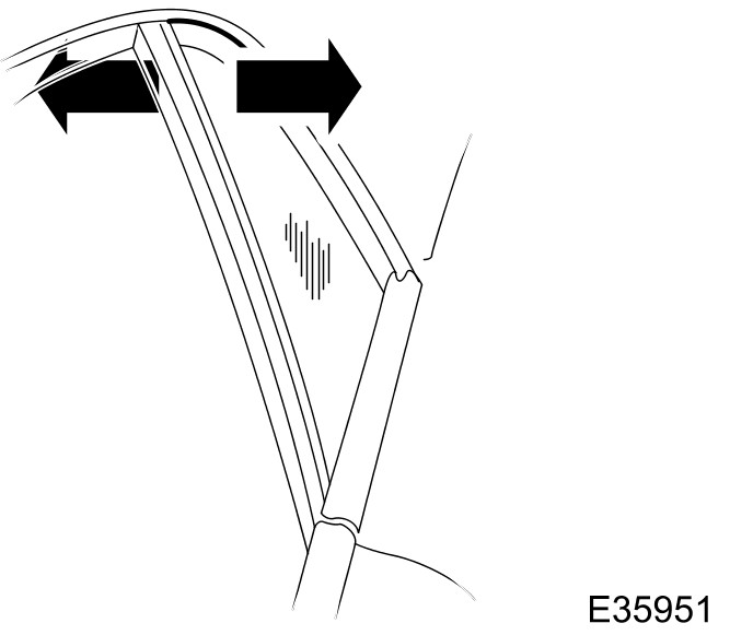 21 Turn the rear adjuster to achieve, lateral alignment of the rear quarter glass rear edge, with the top seal.