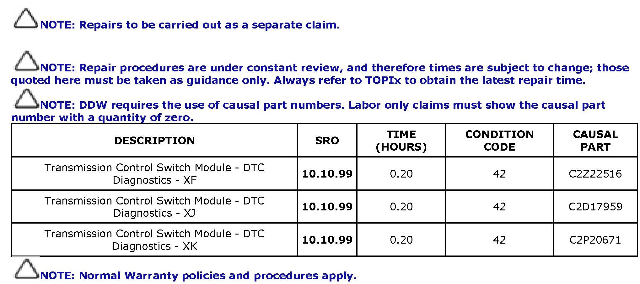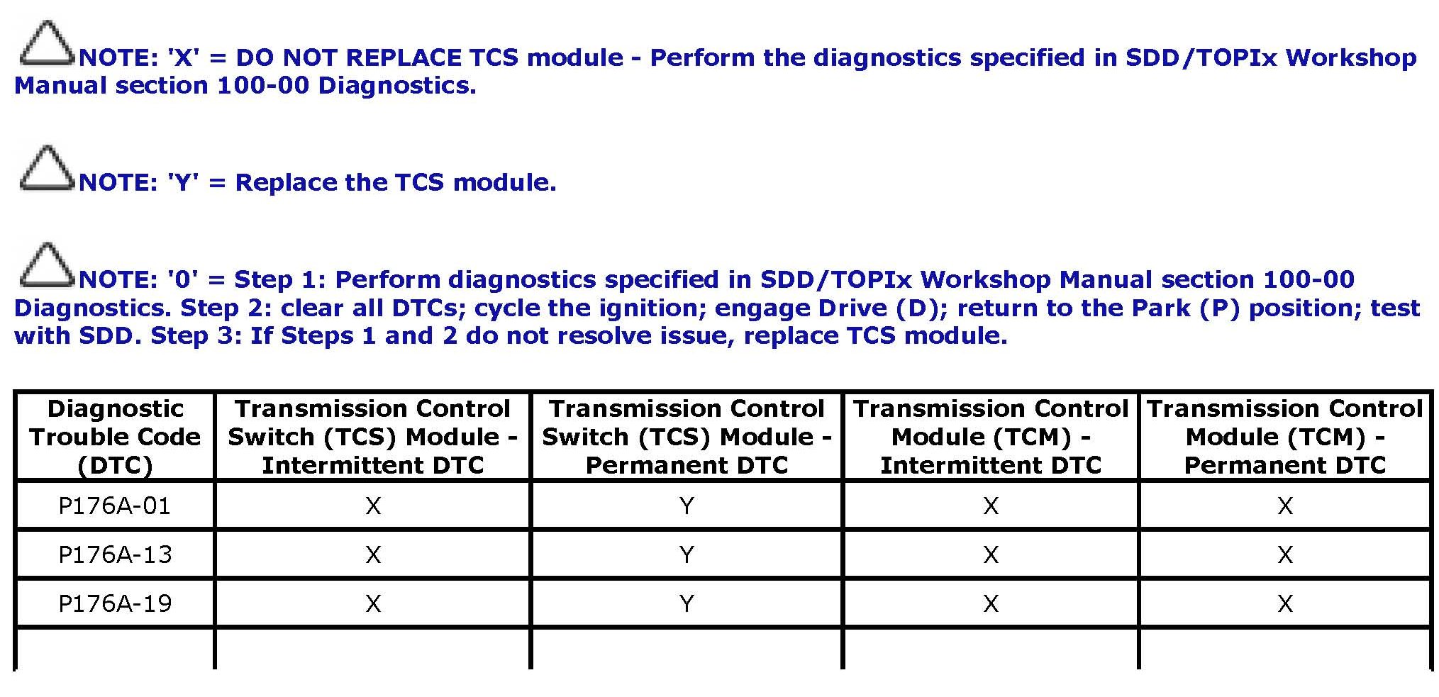 The Transmission Control Switch (TCS) may fail to rise, fail to rotate out of Park (P), and/or fail to rotate between gears. This bulletin is to aid in diagnosing of Diagnostic Trouble Codes (DTC) for the Transmission Control Switch (TCS) module.