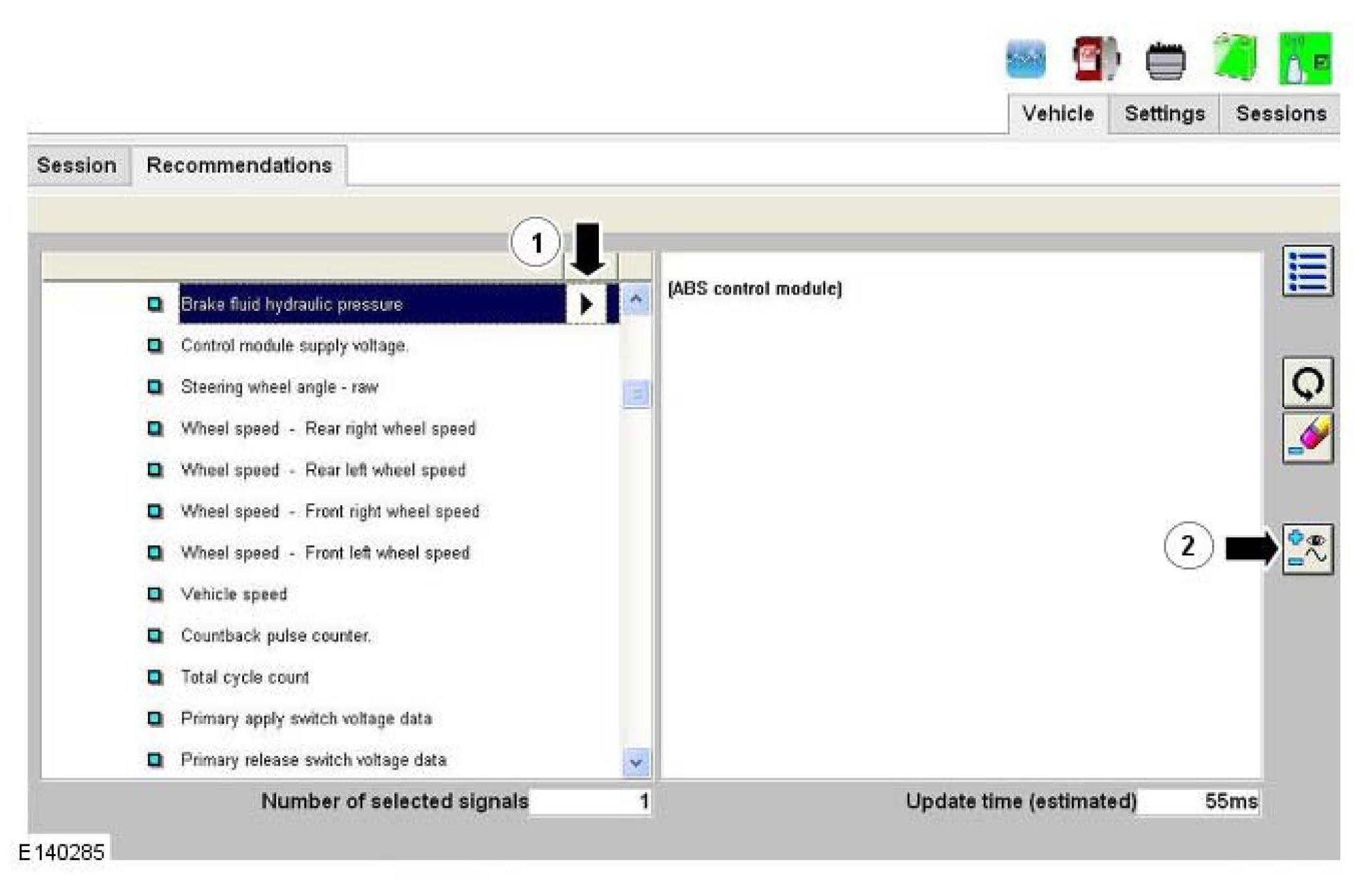 9. Select 'Brake fluid hydraulic pressure' and click on the icon (1) shown.