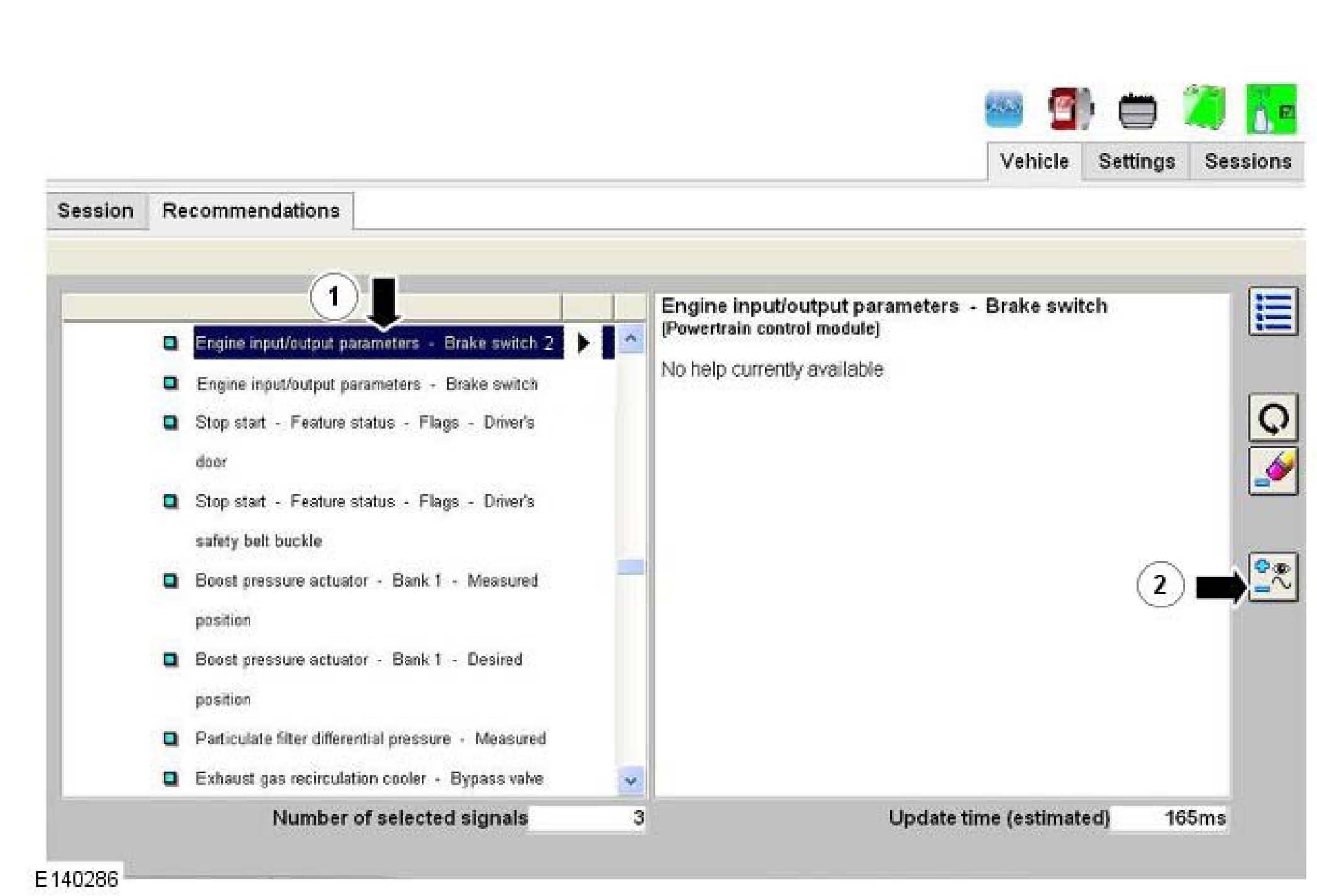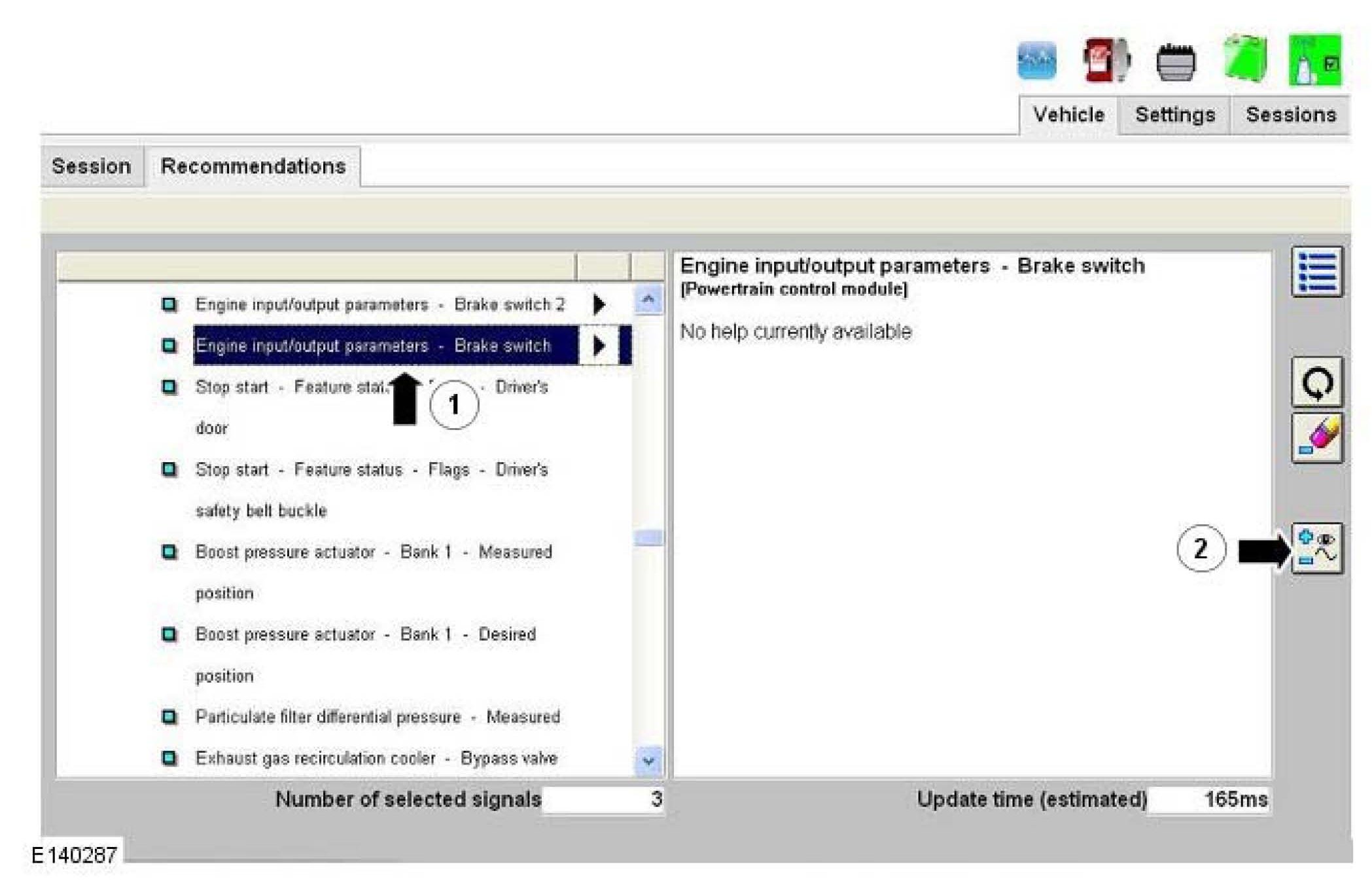 . Select 'Engine input/output parameter - Brake switch 2' then click on the icon shown (2).