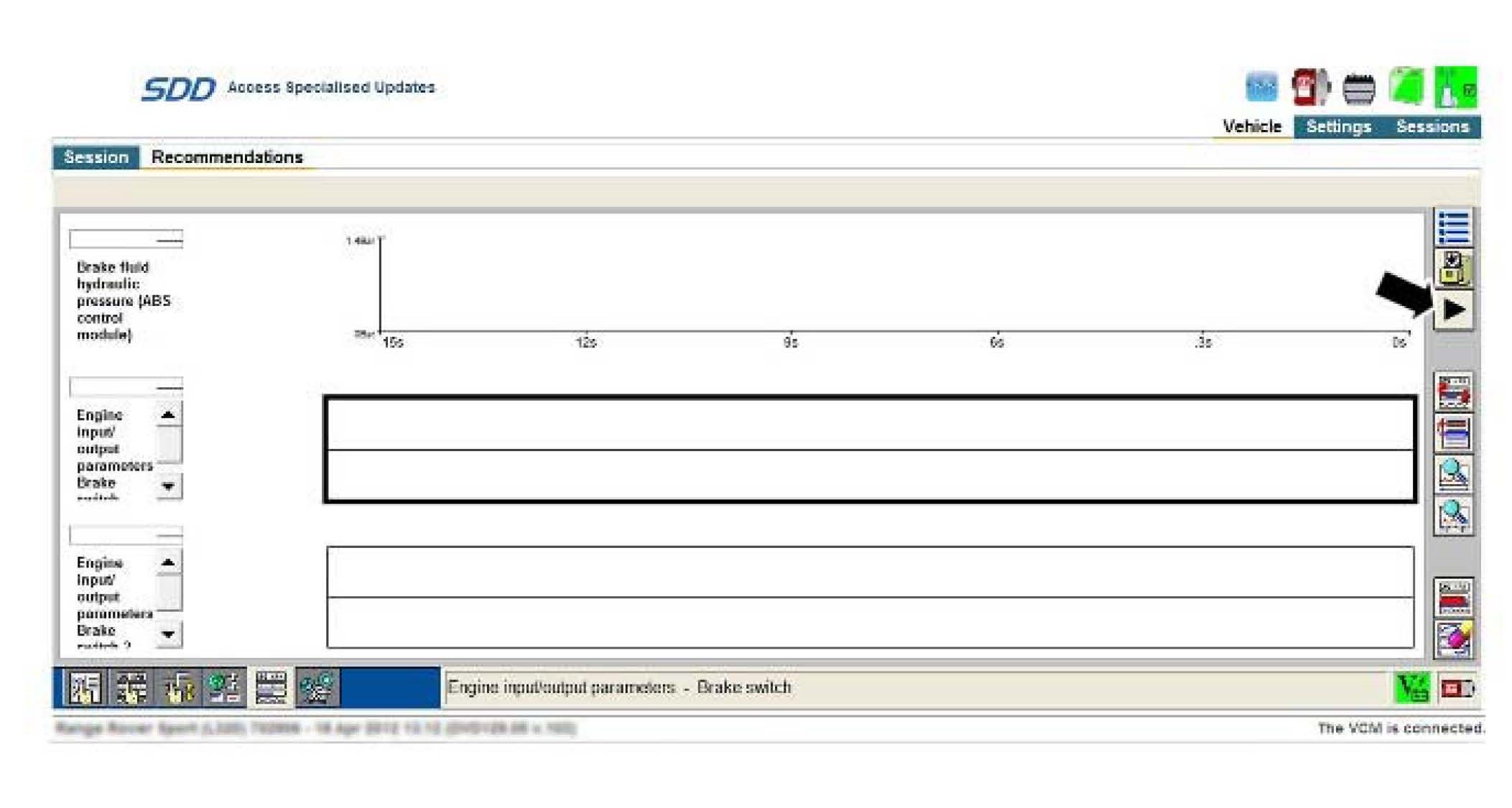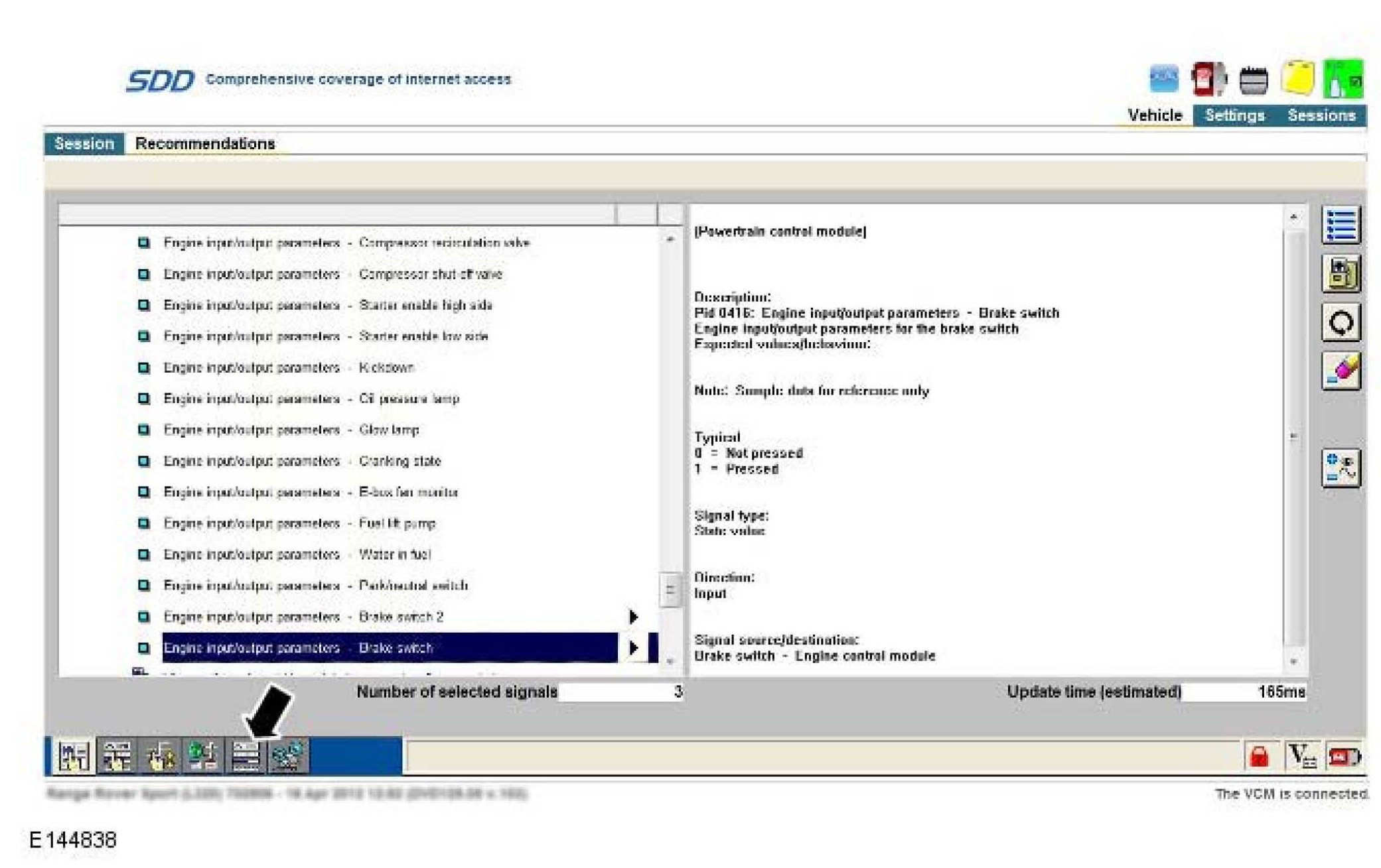 11. Select 'Engine input/output parameter - Brake switch' (1) then click on the icon shown (2).