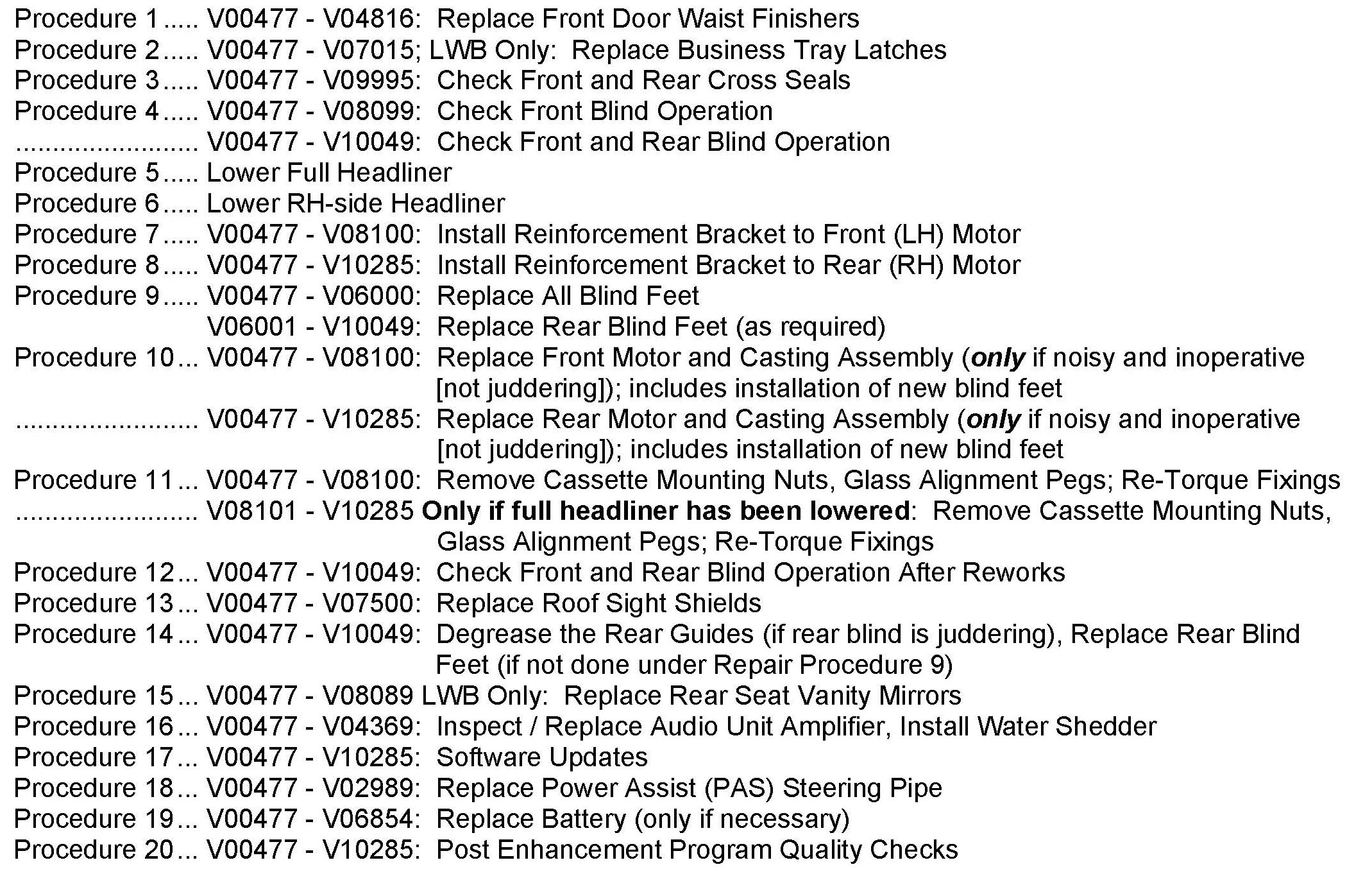 Repair Procedure List