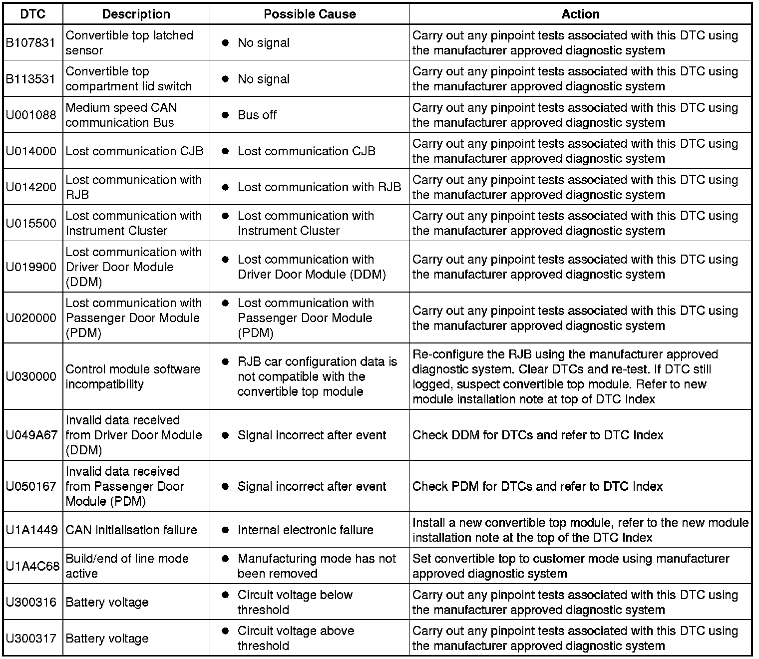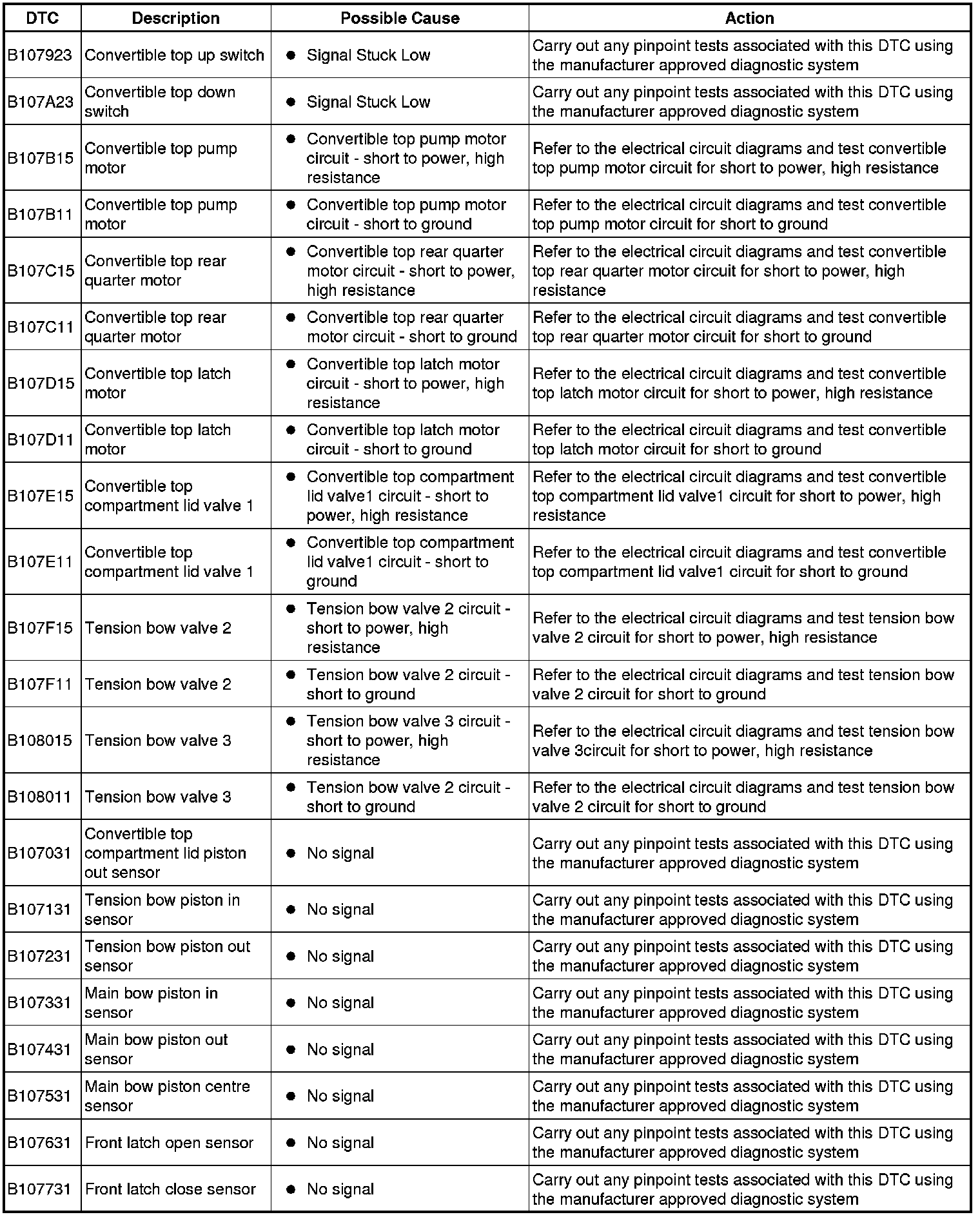 Generic scan tools may not read the codes listed, or may read only five digit codes. Match the five digits from the scan tool to the first five digits of the seven digit code listed to identify the fault (the last two digits give additional information read by the manufacturer approved diagnostic system).