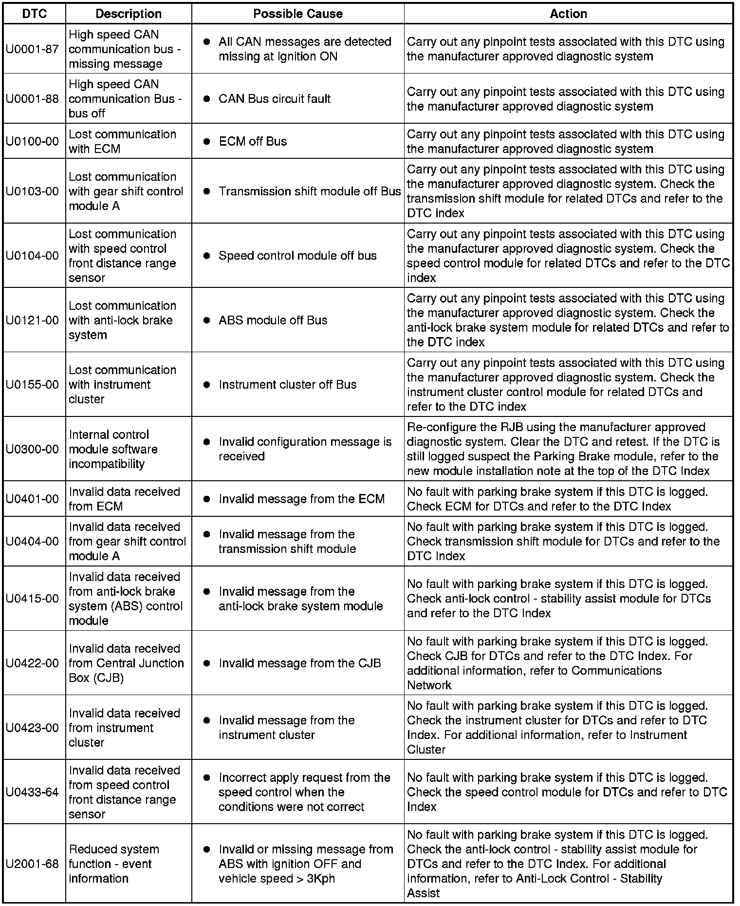 Generic scan tools may not read the codes listed, or may read only five digit codes. Match the five digits from the scan tool to the first five digits of the seven digit code listed to identify the fault (the last two digits give additional information read by the manufacturer approved diagnostic system).