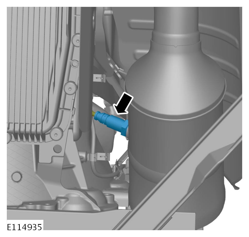 CAUTION: Make sure the catalyst monitor sensor wiring harness is not twisted more than 180 degrees and is not in contact with either the exhaust or driveshaft.