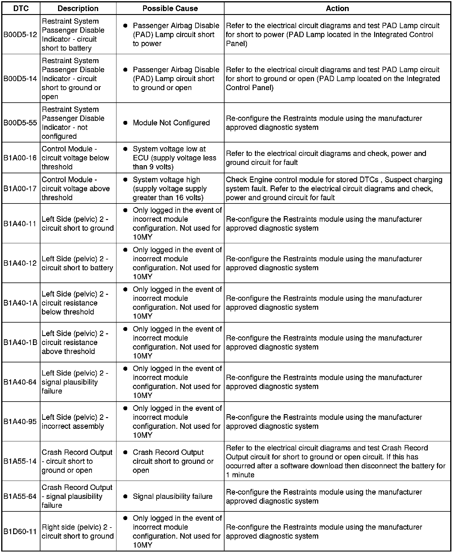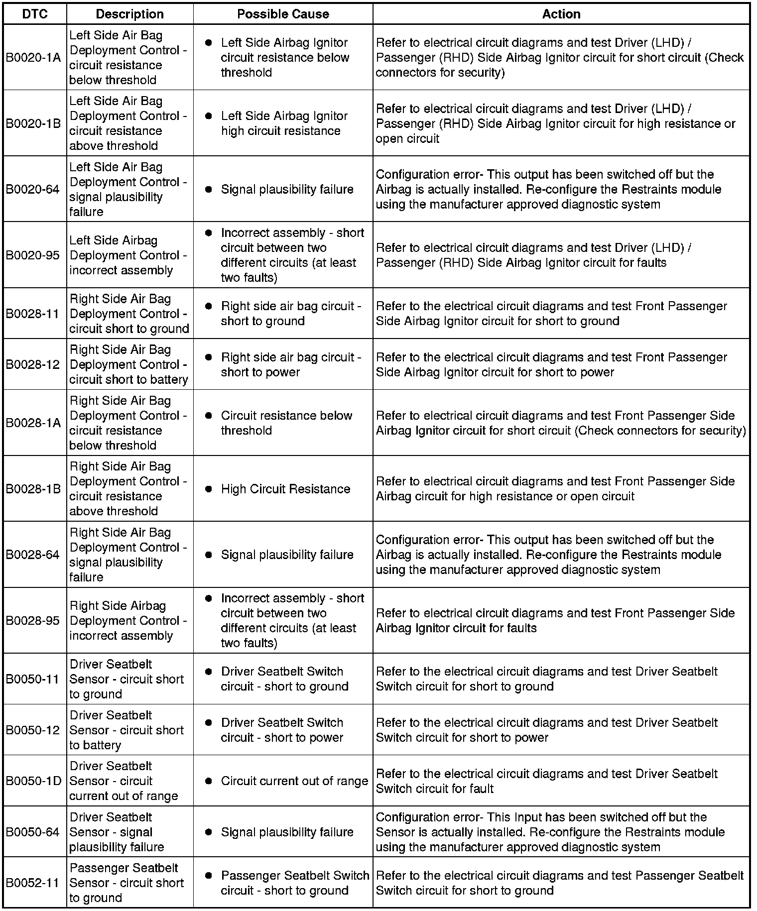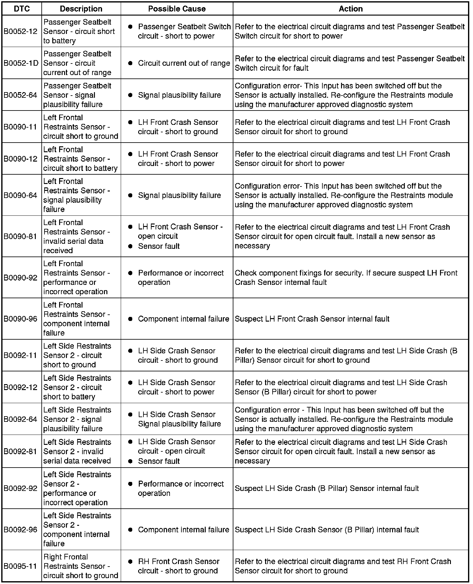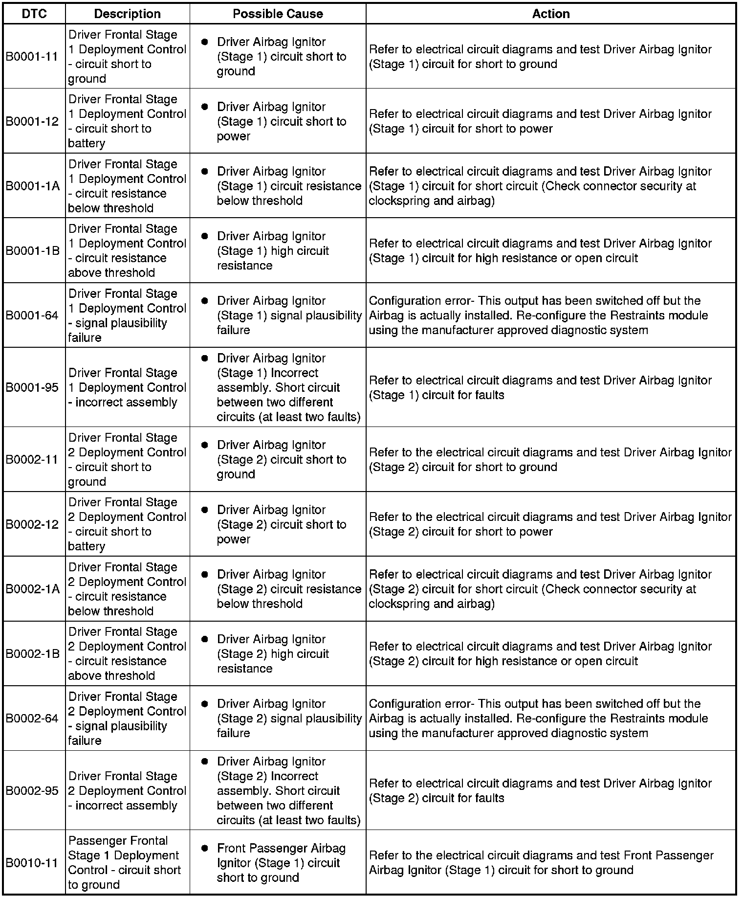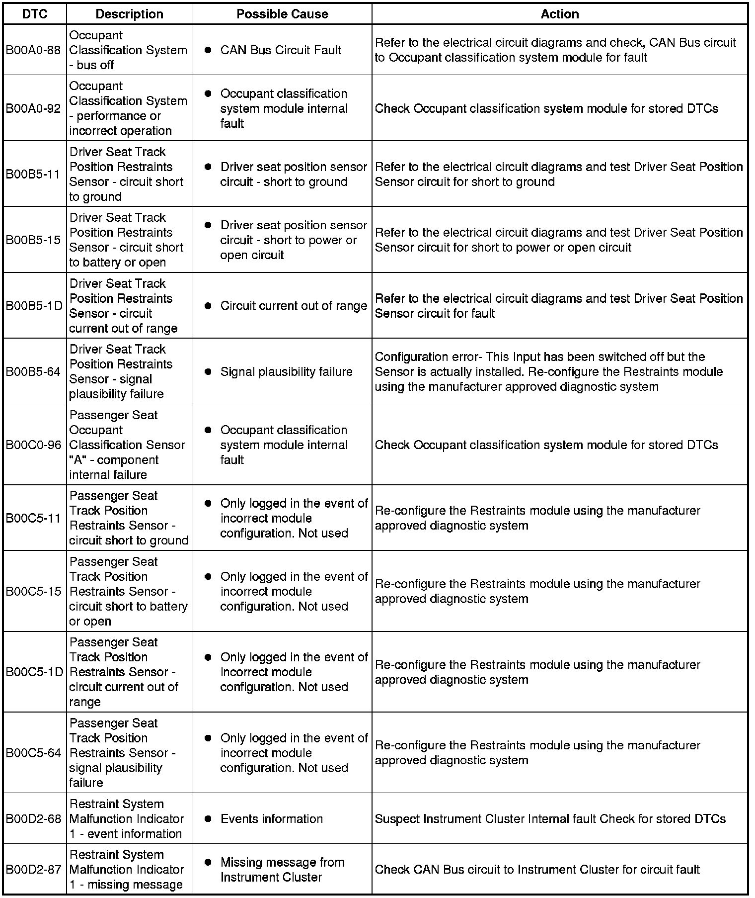 Generic scan tools may not read the codes listed, or may read only five digit codes. Match the five digits from the scan tool to the first five digits of the seven digit code listed to identify the fault (the last two digits give additional information read by the manufacturer approved diagnostic system).