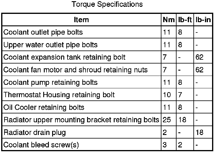 The coolant is of the Organic Acid Technology (OAT) type and must not be mixed with other types of coolant.