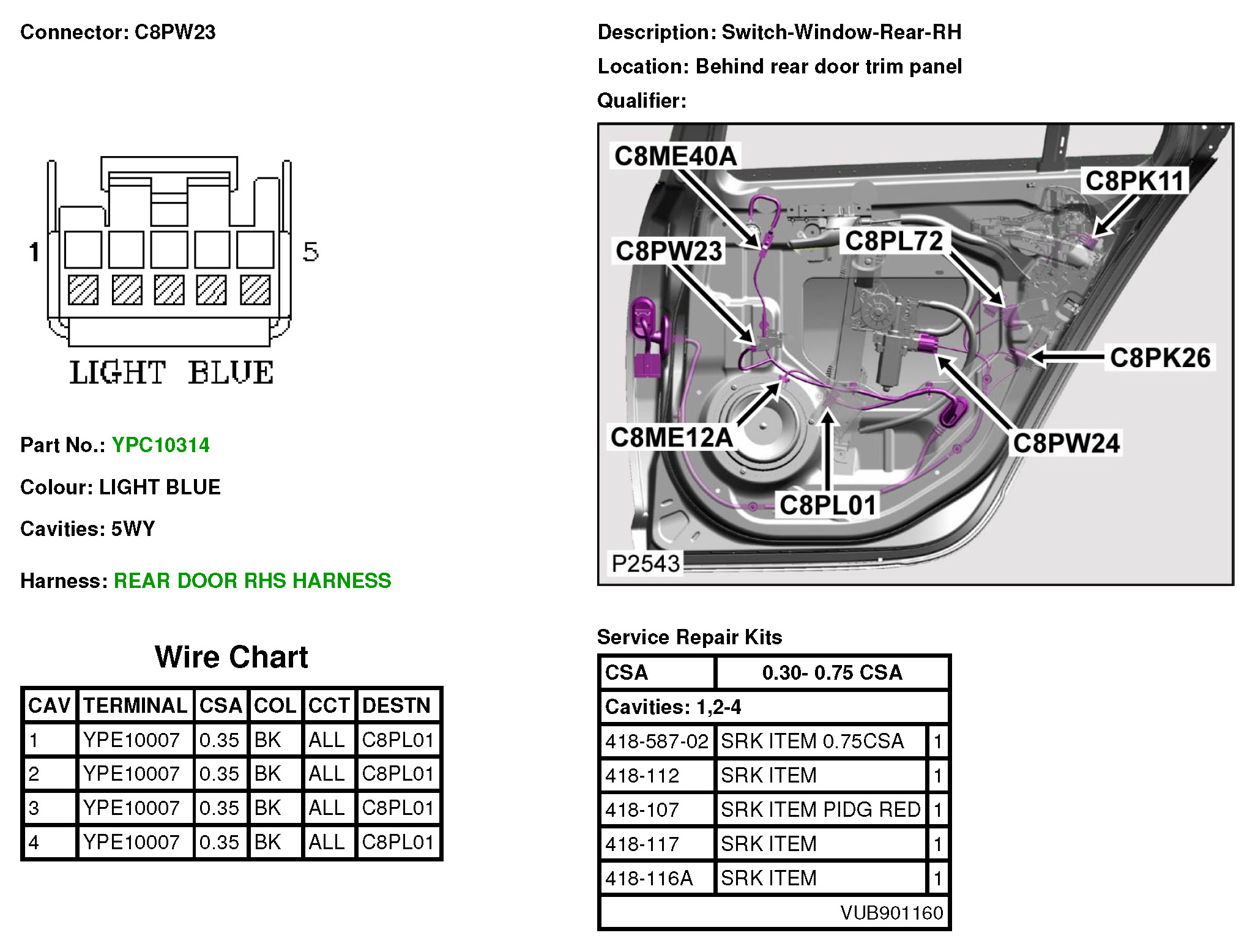 C8PW23 Switch-Window-Rear-RH